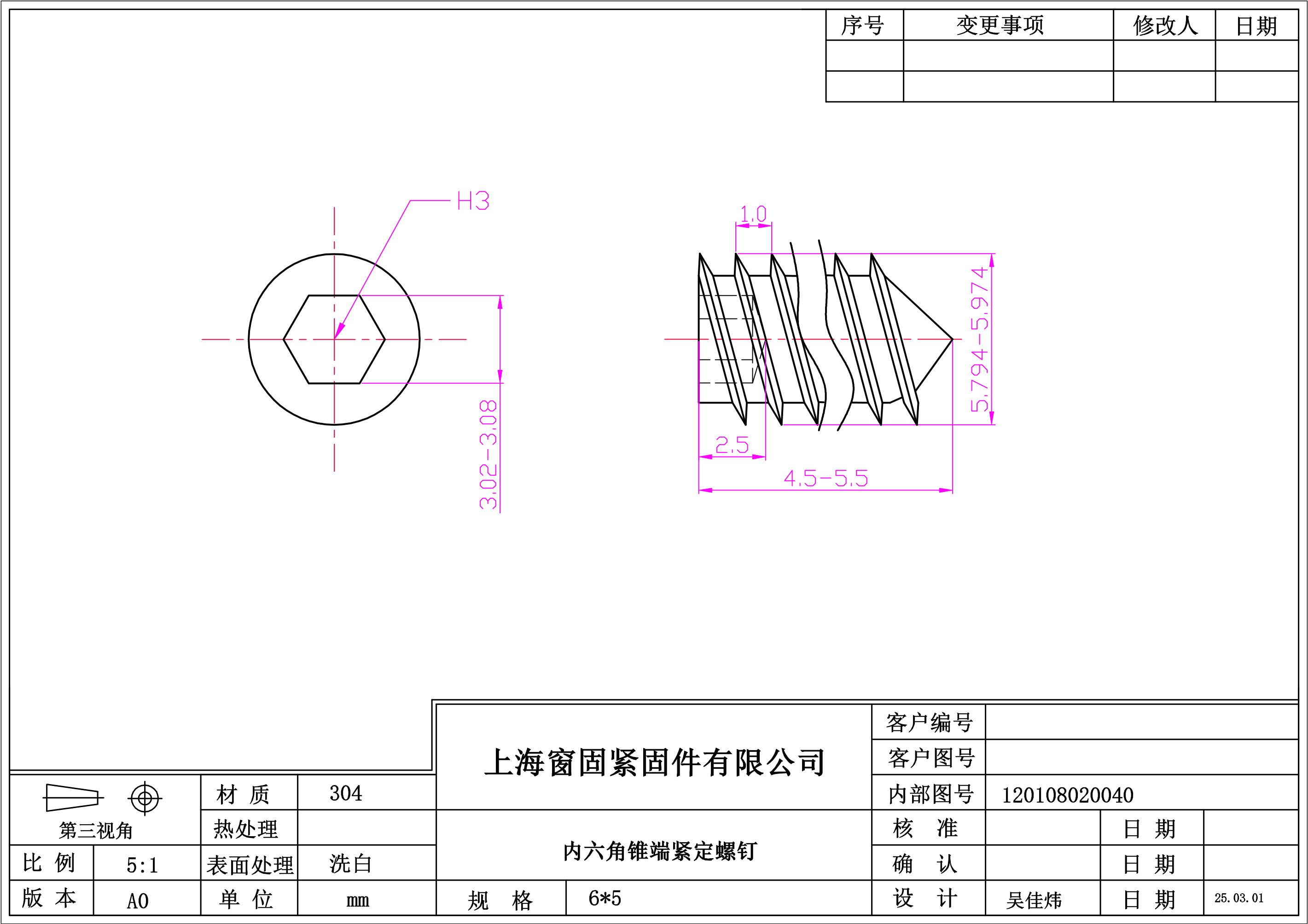 不锈钢304内六角锥端紧定螺钉~6*5~洗白