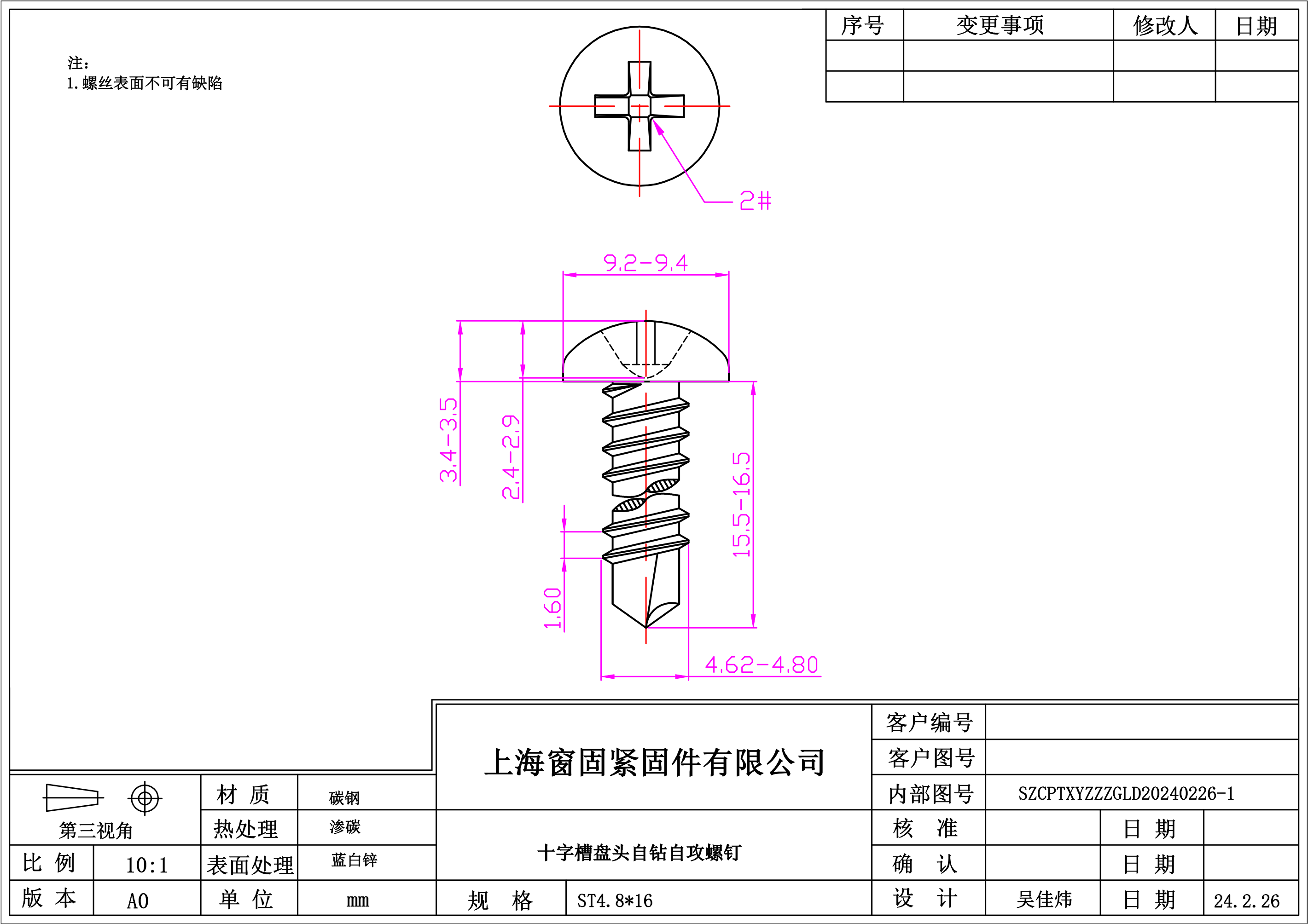 十字盘头自钻自攻螺钉~4.8*16~蓝白锌