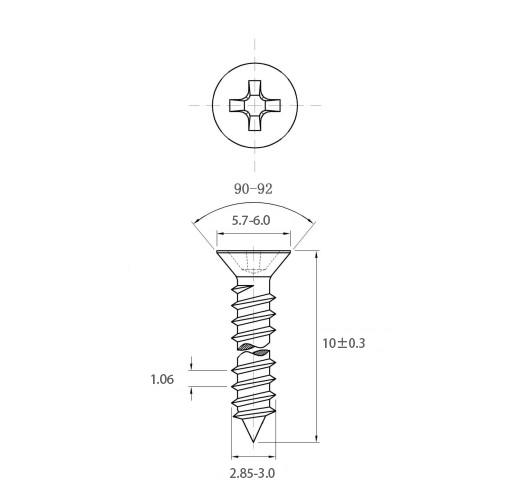 十字沉头带筋细牙束尾自钻自攻螺钉